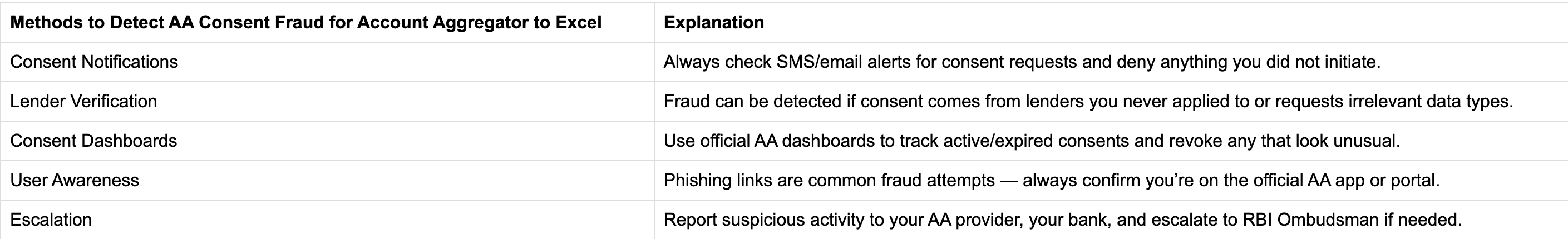 Checking consent notifications carefully for Account Aggregator to Excel: