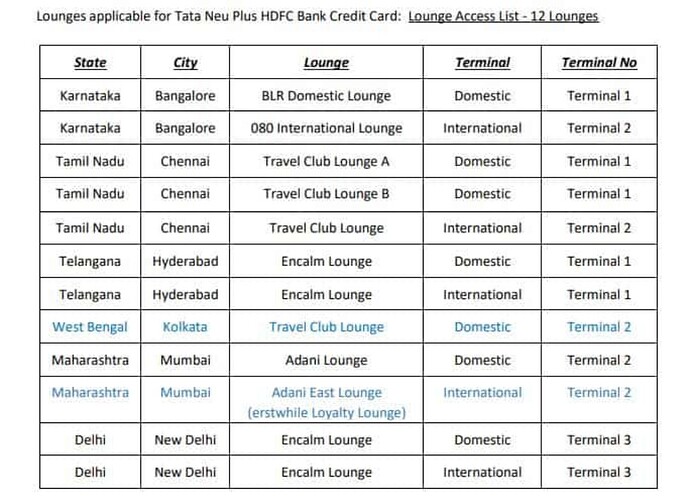 Effective June 10, 2025, HDFC Bank has revised its domestic airport lounge access policy for Tata Neu Infinity and Tata Neu Plus credit cardholders. The key changes are: