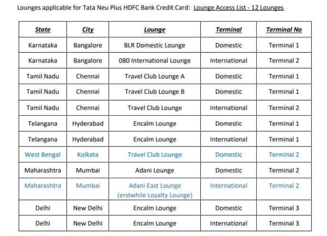 • Voucher Limit: Tata Neu Infinity cardholders can avail up to two complimentary lounge vouchers per quarter (maximum eight per year). Tata Neu Plus cardholders can avail one voucher per quarter (maximum four per year).