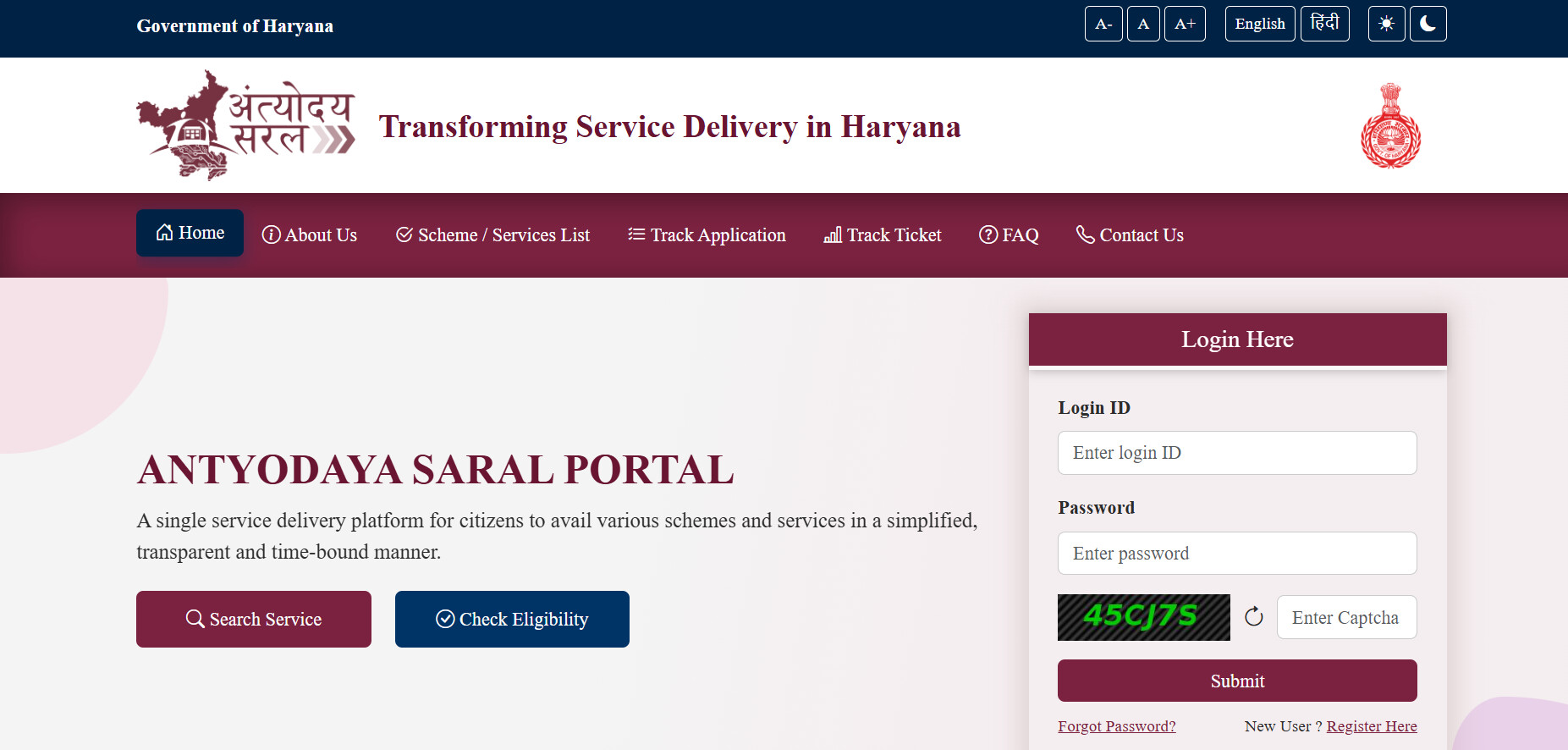 1. Visit the Antyodaya SARAL portal and log in or register (you’ll need details such as your mobile number, Aadhaar or your login credentials).