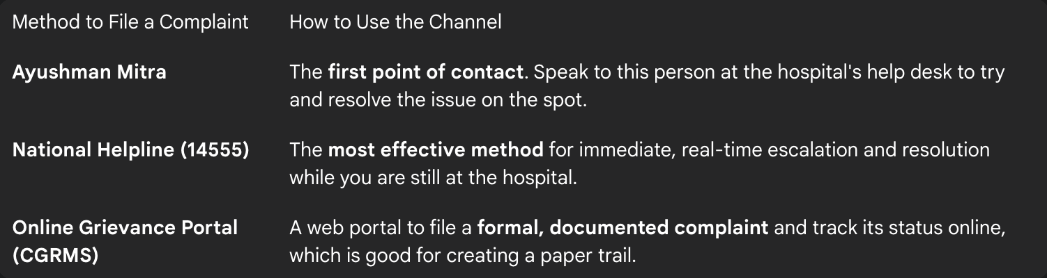 My friend was impressed by how quickly this worked. The helpline operator immediately registered a formal grievance against the hospital in their system. This triggered an alert to the district-level authorities, who then contacted the hospital’s senior management. Within an hour, the hospital manager personally called my friend, apologized for the “misunderstanding,” and instructed the staff to proceed with the cashless admission.
