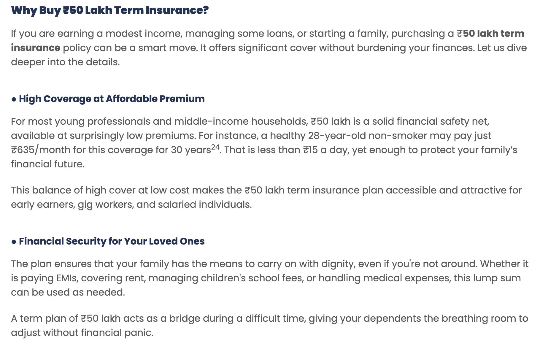 I tried applying for a 50 lakh term plan at ₹7,123/year. I realized that the premium was only available for healthy non-smokers under 35. A colleague of mine, slightly older and with mild health issues, had to pay a higher premium for the same coverage. This showed that low premiums often depend on strict eligibility conditions.