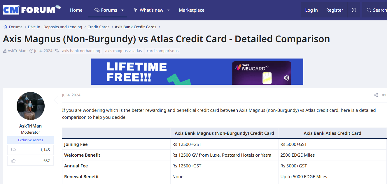 Even considering the annual fee of ₹35,000 on the Magnus card, it gives a much superior effective return of 25.2% vs 19.4% using Axis ATLAS. For those on Axis Burgundy who have a fee waiver, the Magnus card value further increases.