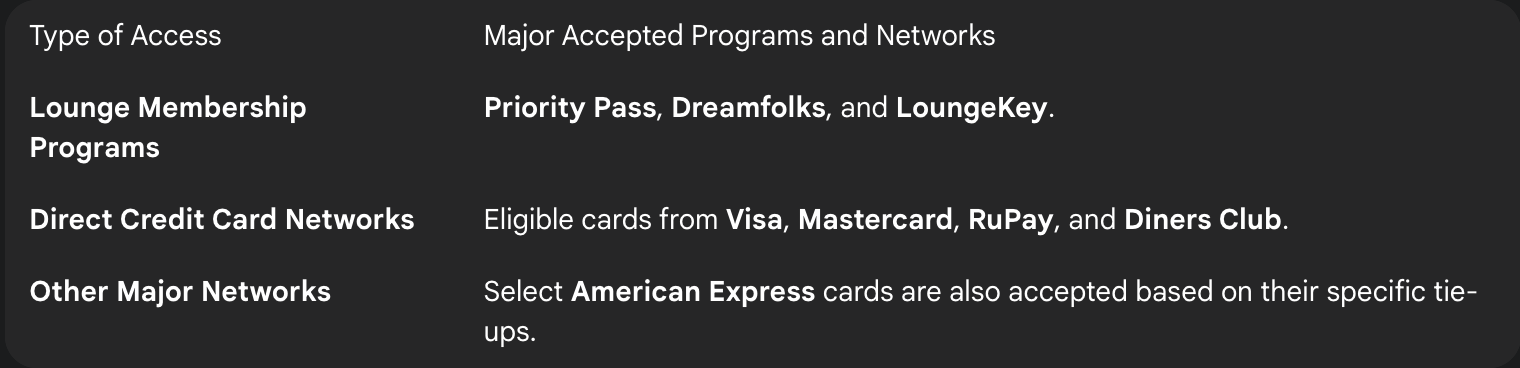 My friend who is a frequent flyer explained that the primary way to access the lounges is through a membership program. He confirmed that the 080 Lounges at both terminals accept cards that are part of the Priority Pass, Dreamfolks, and LoungeKey networks. If your credit card provides you with a membership to any of these programs, you can use it for access.