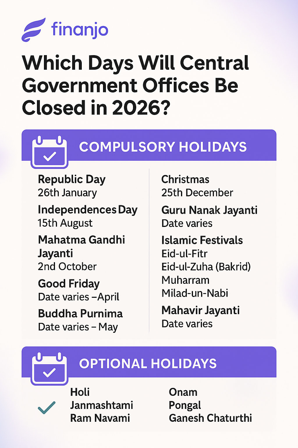 In 2026, central government offices across India will follow a set of compulsory (gazetted) holidays that everyone observes, plus a few optional holidays that employees can choose based on local/state preferences.